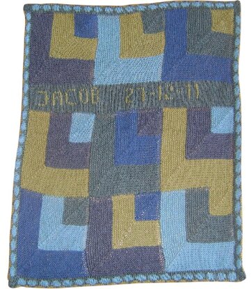 This pram blanket is knitted in domino knitting on needles 4½mm.I have used 2 thin yarns of wool and cotton. In the end you knit the edge and the fold. The edge and fold consist of 3 rows of balls In the part of plain knitting you may embroider the name of the child and the date of birth with chain stitches or duplicate stitches.