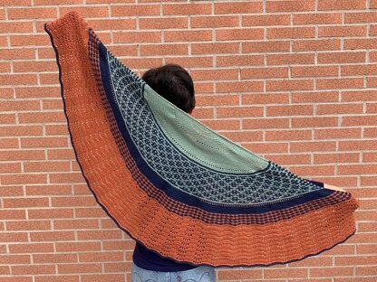 Don’t Judge a Book by its Cover is a three-color, half-circle shaped shawl designed for Sport weight to Worsted weight yarns in solid colors.