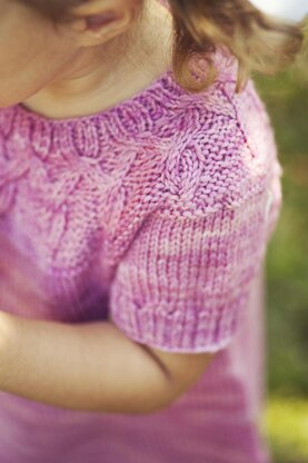 DOODAD is a seamless dress knit from the top down, with a round cabled yoke and short sleeves. This design has been created in collaboration with Red Riding Hood Yarns for Winter Club 2015.