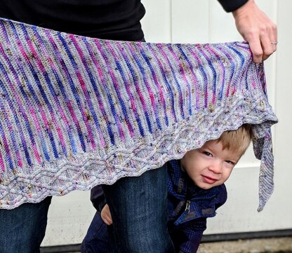 This triangular shawl is knit on the bias using German Short Rows to form stripes while knitting the cable edge at the same time. Pair your speckled or mini skeins with a solid for an amazing combination!
