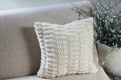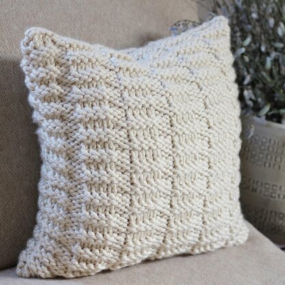 Dorina pillow cover is knit up in super chunky yarn in textured pattern. Simply adorable! Provides instructions on how to make these cushions in both sizes - 16x16’’ and 18x18’’. Zip fastening.