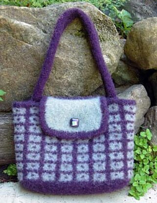 A knitting pattern for a bag worked in a mosaic stitch with a single strand of worsted weight throughout, except for handles.