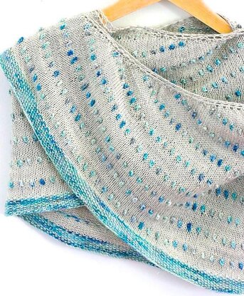 First in a series of two (so far) shawls that seek to show off gorgeous, hand dyed variegated sock yarns in unusual ways. Designed as part of my portfolio for the [Rhode Island School of Design Hand Knitting Program][4].
