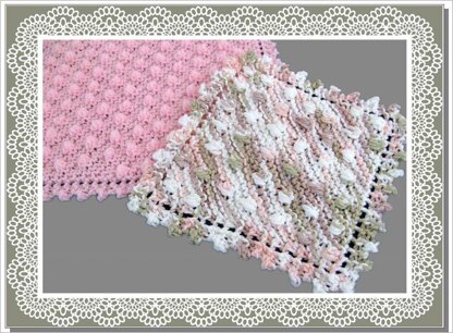Very pretty dishcloth knit on the diagonal with bobbles and picot edges which reminds me of the dotted swiss dresses I wore as a small girl.