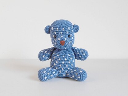 If you want the formatted, ad free, 11 page PDF document (with written instructions and more than 60 images in photo tutorials) of Dotty Bear, this is available in my pattern store.