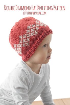 The Double Diamond Hat Knitting Pattern looks complicated but it's really not! This is a fun fair isle baby hat knitting pattern with a pretty double diamond pattern interlocking around the brim. It will look great knit in any color combination you want, it's the perfect baby hat for you little diamond!