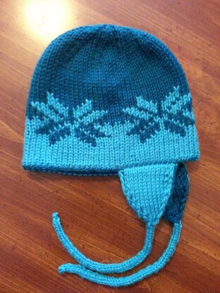 This hat is knit in a round in the double knit stitch. It has color work with a chart to follow. It is reversible and very warm because of the double thickness.