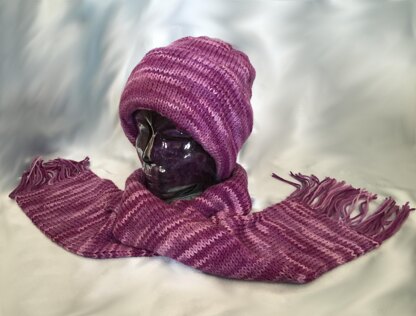 Double knit hat is so cleverly done! You wont believe it. This is like having 2 hats on your head at once, both side are stockinette stitch, making it completely reversible! This is knit in one easy piece! Matching scarf is 50 inches long. Can be made longer or shorter. Also given are sizes for children. Uses worsted weight yarns, knitting needles, US # 9, in 16 or 24 circular. Use size # 7 for children. This makes the warmest hat and scarf ever, so knit up one for a gift for your friends that live in cold climates! Scarf is double thick too!