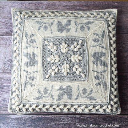 Dove square uses tapestry and overlay crochet technique with a variety of different stitches. They are not intricate or difficult. And the pattern guarantees you will not be border till the very end.