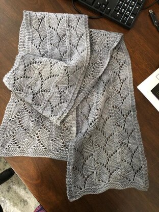 This pattern is designed with a lace motif that runs up the length of the scarf, to resemble dragon scales. Even with the lace pattern, it becomes easy to knit while watching tv as you progress through the pattern.