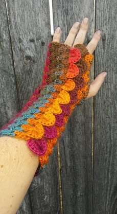 A great way to showcase lovely yarn. These gloves keep your hands and wrists warm while leaving your fingers free to type, text, or even crochet.