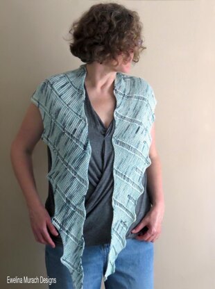 Dragon Wing is a narrow, semi-triangular shawlette, combining the simplicity of garter stitch with an easy reversible ladder pattern and interesting shaping. The simple design works best with hand-dyed yarns in variegated colourways. The pattern contains both charts and written instructions for 2 sizes, including a one-skein option.