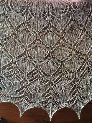 Drifting Seas is an airy lace shawl that combines a handful of cables with lots of lovely lace. A gently repeating lace motif extends across the fabric and culminates in a simple cabled garland towards the border. I love introducing cables in lace motifs, using a lace weight yarn – the cables give a three dimensional quality to the fabric as they rise above the backdrop of lace. With this shawl you get the benefit of cables, but only have to work them for 8 rows in total. Finally, a delicate flower motif set into the scalloped edge makes this an eye catching lace shawl, and a great way to try your hand at delicate cabled lace.