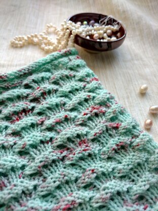 This cowl is knit in the round from the bottom up, beginning and ending with a rolled edge that compliments the lacy cresting waves. Instructions are given for 3 sizes in order to make a cowl that is tall and snuggly, double wrapped, or extra-long. Instructions are written, and a chart is included for the Cresting Waves Lace.