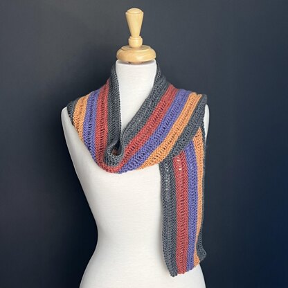With a garter stitch base and an unexpected twist — literally — on the classic drop stitch, this simple scarf is a winner. Knit it in dk-weight yarn as shown here, or choose worsted weight yarn for a thicker and larger scarf.