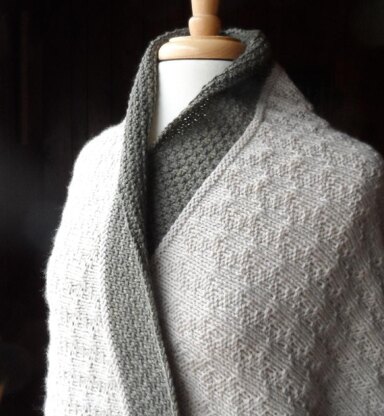 A textured wrap featuring two colors of Swans Island Natural Colors Merino Worsted. Size can be adjusted by casting on more or fewer stitches/knitting more or fewer repeats. Yardage will vary accordingly.