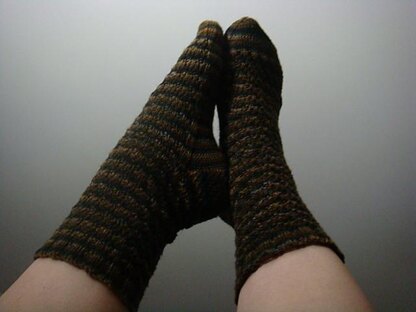 It's a very simple pattern, producing a textured diagonal ribbed sock. While I had added in plain ribbing at the top, one could knit the socks without it as the stretchiness of the diagonal rib will keep the socks up nicely.