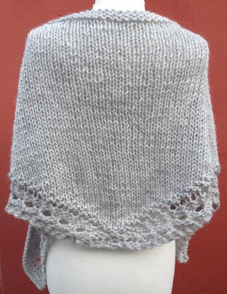 This pattern works up really quickly, with a simple 4-row repeat. The border is knitted as you go, so no picking up stitches later. Gauge is not critical and since it it worked from the tip upwards, you can make it as big or as small as you like.