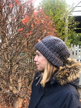 I designed this garter stitch beanie as part of my first knitted beanies set of patterns . I’ve called it the Eaglehawk Bendigo Beanie after my grandfather who was born there in the nineteenth century . His wife loved to knit and introduced me to feminist ideals at a young age . I’ve named the Izzy Lou Poncho after her . Together , they were know as Ted and Lou .