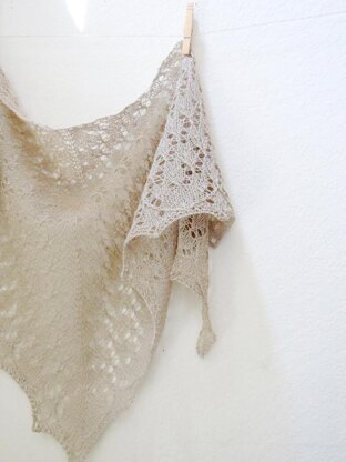 A triangular shawl worked from top down with small butterfly motifs.