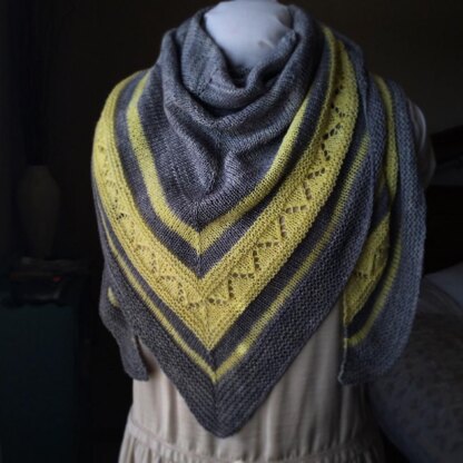 The colors in this shawl remind me of the first rays of morning light that spill effortlessly through the grey skies of early dawn. One of nature's fleeting beauties, frequently enjoyed by "early risers".