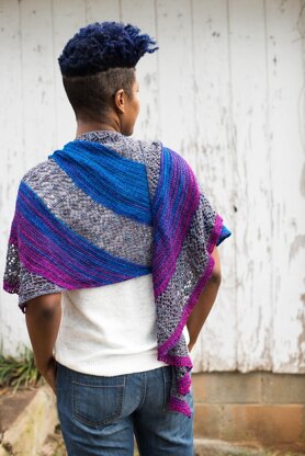 Cast on from one small tip, this generously sized asymmetrical shawl grows in ever expanding rows alternating bands of texture and beaded lace. The texture is easy to work and allows the beautiful gradient yarn to shine through. Just when you might be getting bored with the simple knitting the beaded lace arrives to engage your interest.