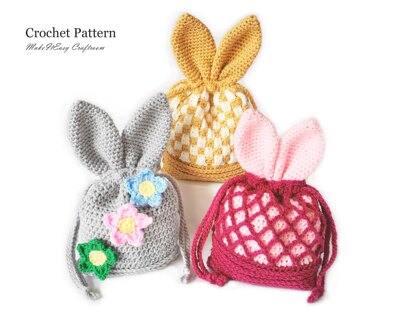 Easter bunny bag with ears Crochet pouch Easter gift Mesh bag Woven bag Easter egg hunt project