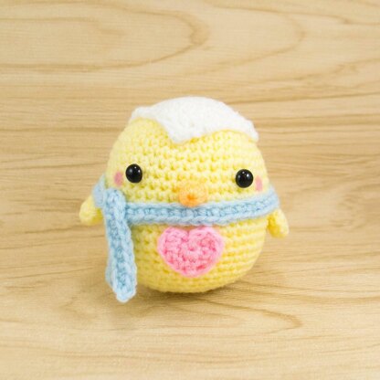 | One size only: | Using fingering yarn with 2.5mm hook will produce a palm size chick of about 6.5cm/2.6in tall and 6cm/ 2.4in wide. |