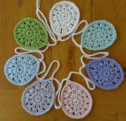 The egg design is based on traditional granny stitches, so should be quick to make. Make them in bright or pastel colours and leave them plain (which is how I like them), or decorate with buttons and beads.