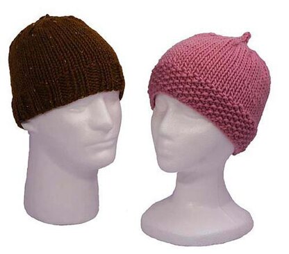 Simple and stylish caps with two brim options — seed stitch or rib — knit in worsted OR chunky weight yarn can be finished in an evening!