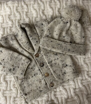 This is a Jacket and hat knitting pattern in an easy knit design, with no stitches to pick up for the borders and neckline. A perfect project for a beginner.