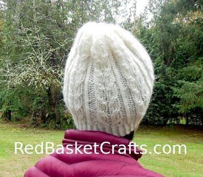 Unisex beaniehatwith cables worked withoutcable needle. Will fit most adult and teen heads**.** Recommended yarn: ¾ skein Cascade Yarns Pacific or other worsted (4) acrylic/wool yarn (213yds/195m, 3.5oz/100g per skein). Gauge: 9 sts in stockinette st on larger needle = 2''/5 cm.
