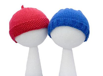These neat and stylish caps come in two styles—with a seed stitch border or a simple ribbed border. Both versions are included on this pattern.