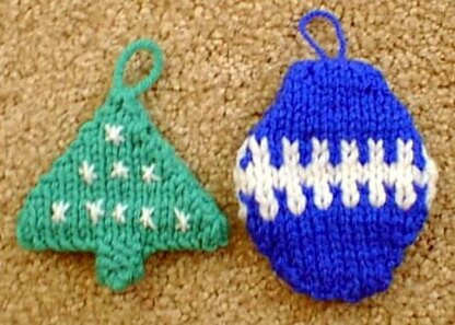 Knit up the tree or the ball ornament, or both! This are simply made, and we left the top or side open to insert cash, candies, jewelry, etc, for gifts! Hang on the tree and let them find their gift inside the ornament! Fun and easy to knit. Uses scraps of worsted weight yarns, and knitting needles, US # 5.