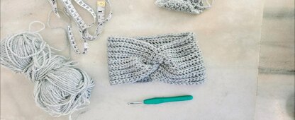Cosy crocheted headband/Earwarmer in a knitt-looking stitch with a twist. The Pattern includes 10 sizes from preemie to adult large. Make one to everyone in the family or in every color you like. Perfect way to learn and practise this knitt-looking stitch! If you are a beginner - perfect way to practice crocheting with a small item as a headband as start!