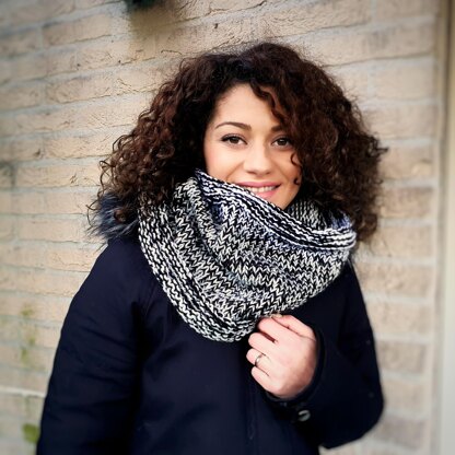 The Cowl is worked holding 2 strands of DK yarn at ones.