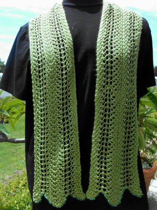 The pattern contains no purl stitches and is what my mother would have described as a "fancy shmancy" garter stitch. If you can cast on, knit, yarn over and knit two stitches together, you should find this a quick and easy knit.