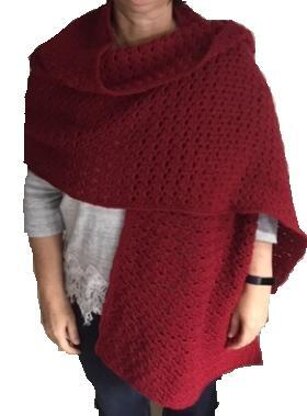 The Claret Shawl pattern is easy to work but effective and the resulting shawl is a cosy and warm and loosely drapes around your neck to keep you warm and snug in the cold and frosty weather.