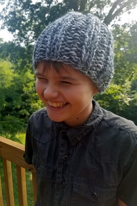 This is a super-quick and very easy knit that my son likes. He's picky about hats!