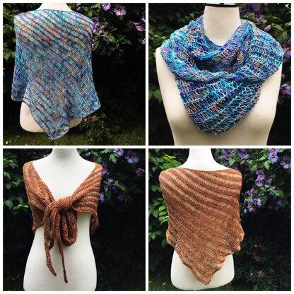 The Easy Street asymmetrical shawl is a simple, fun and adaptable pattern. The instructions are given for 2 different versions of the shawl: The blue shawl in the pattern pics is version 1 and is a 4 row repeat pattern, version 2 is the brown shawl and is an 8 row repeat pattern.
