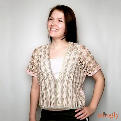 The Easy Striped Summer Tee is a great summer make - so easy you can crochet it at the beach or by the pool! Two rectangles, made of the most basic stitches, get seamed into a flattering v-neck top. The linked treble stitches at the waist give it a rolled look - but there's a substitute for that in the notes!