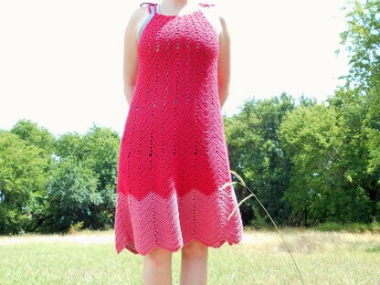 This breezy swing dress is made from the bottom up in an easy ripple pattern.
