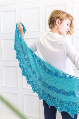 *When it comes to self-care, millions of people rely on yoga—not only for relaxation, flexibility, and general health, but also for self-reflection and self-actualization. Particularly in vinyasa yoga, the emphasis is on synchronized breathing with smooth transitions from one pose to another. Like the rise and fall of the tides, the body and breath work together in constant motion. This fluidity of breath and movement naturally leads to greater flow of energy through the body and mind. Ebb & Flow echoes that energy as it transitions from garter stitch to feather-and-fan lace and back again. *
