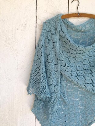 Echo is a soft, swingy triangle, easy to knit, with two reverberating lace patterns. It is cast on at the open, lacy border and worked upward to a point. She was composed in New Orleans during Jazz Fest where, from the patio could be heard the sounds of joyful music made delicate by distance. Echo is large enough to wrap up in on chilly evenings, yet light enough to keep the sun from delicate shoulders. Prepare yourself for an enchanting knit!