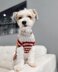 The Eddie is a classic striped style sweater perfect for sweater weather. It looks chic on any dog and can made in any colour combination imagined. It is knit seamlessly from the tail to the collar so there is no seaming necessary!