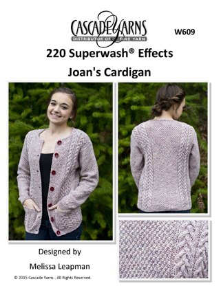 Effects Joan's Cardigan in Cascade Yarns 220 Superwash® - W609 - Downloadable PDF is a free Intermediate Knitting pattern by Melissa Leapman, available as a Downloadable PDF and includes instructions in English. Super fun to make, this pattern could be your next masterpiece!