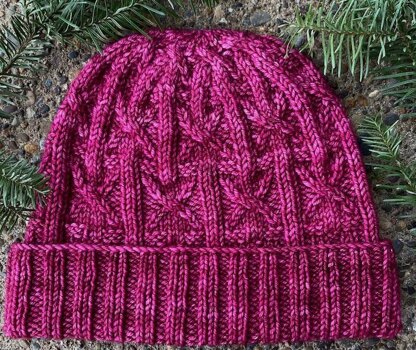 This folded-brim beanie with bold cable crosses will help you stay warm and cozy when cold weather strikes. Knit it in a vivid color (like this cheerful pink) to brighten up a winter day!