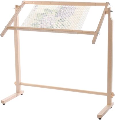 Elbesee Maxi Clip Floor Frames are made from polished hardwood and are suitable for tapestry, cross stitch and counted thread. This frame allows you to simply clip on your material, and then tension by rolling the bars and scrolling the fabric. This means that no additional sewing is required to attach your canvas to the frame. The frame also has adjustable angles, including posilock joints that stay where you place them and a full 360 degree swivel top. There are five tape arm positions ranging from 8cm to 41cm, depending on the size of canvas that you are using. Leg height: 78cm.