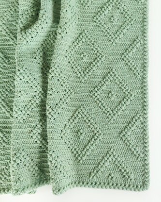 The Elegance Bobble blanket is a beautiful crocheted blanket with textured diamonds that are visible on both sides of the blanket! This blanket is not only wonderfully warm and cozy, but the textured diamond pattern also gives it an elegant and sophisticated look.