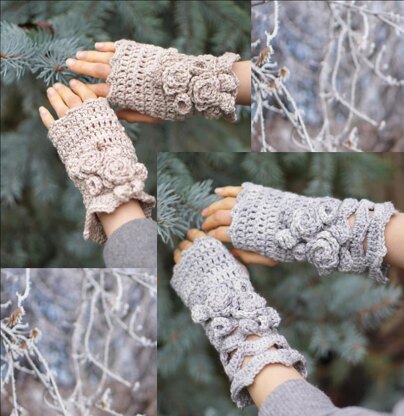 The Elegant Rose design can also be made without the floral embellishments for a different look, or add a button to the top of the hand warmer. Various scarf patterns are available to match on my other listings.